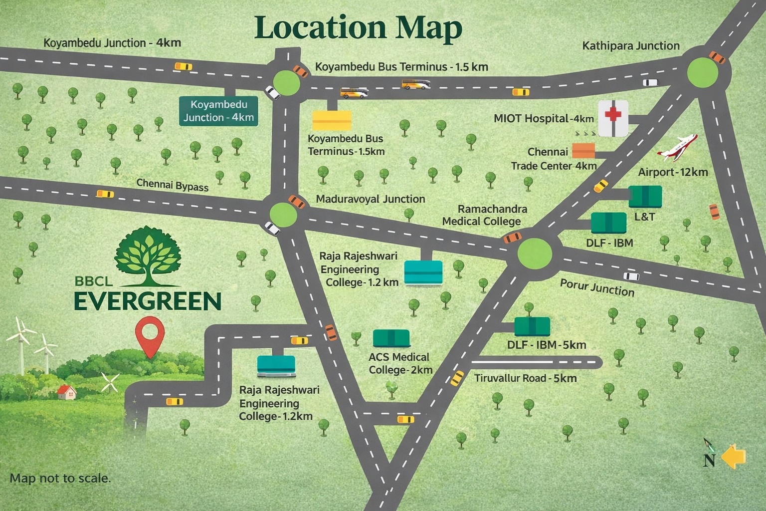 BBCL Evergreen presents premium residential plots for sale in Chennai, located at Tharapakkam near Gerugambakkam. Backed by BBCL's legacy as one of the trusted builders in Porur, this CMDA-approved and RERA-registered project offers 42 fully developed villa plots across 1.8 acres. Designed with modern infrastructure, ready-to-construct layouts, and excellent connectivity, Evergreen is the ideal choice for both investment and building your dream home. With BBCL's commitment to quality, you secure not just land, but long-term value.